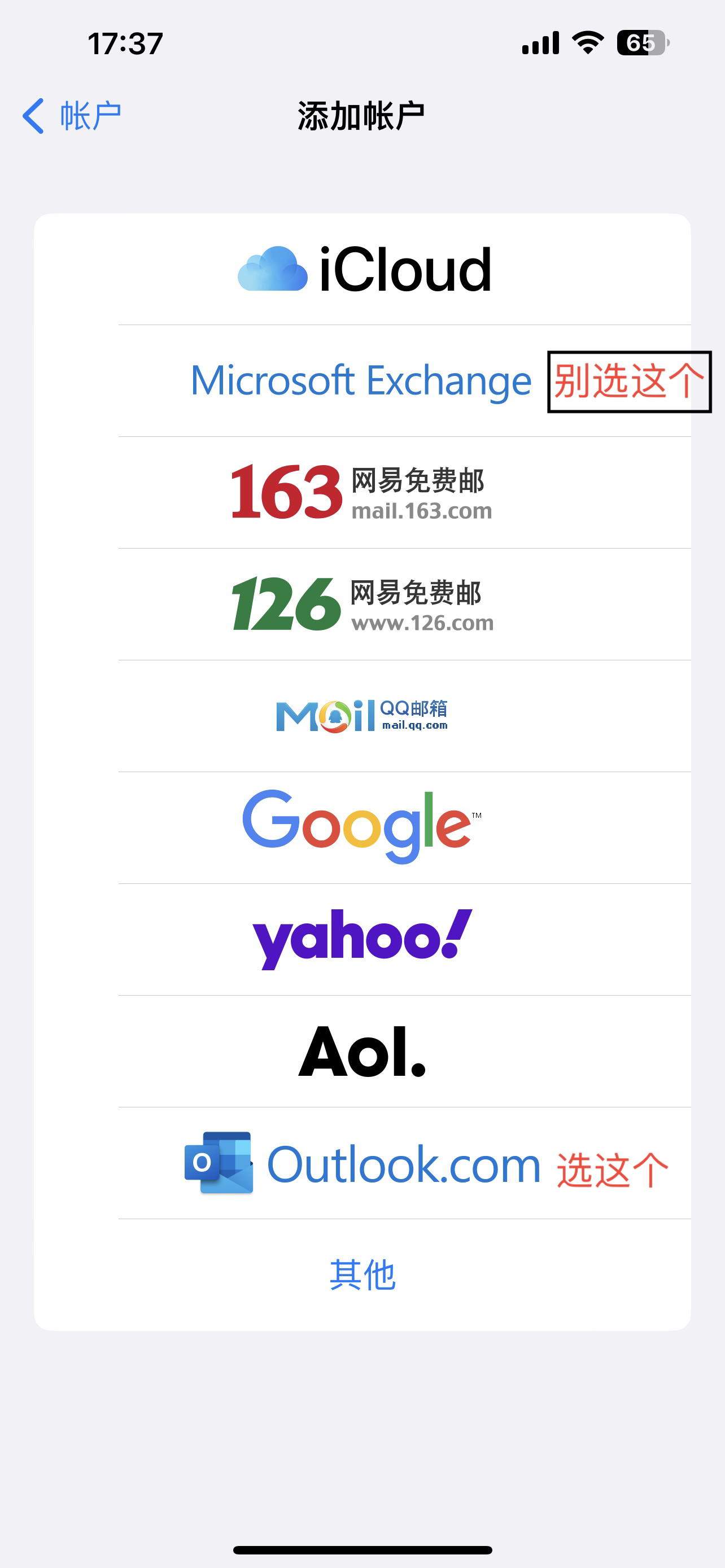 在iphone里添加账号的时候,邮箱类型选择了 exchange