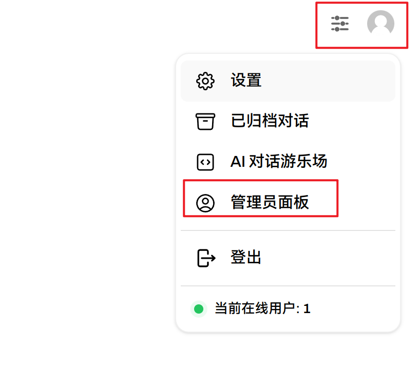 点击右上角图标,选择管理员面板